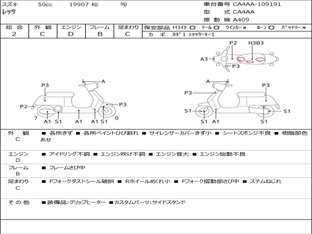 | Номер рамы / VIN | CA4AA-109191 |