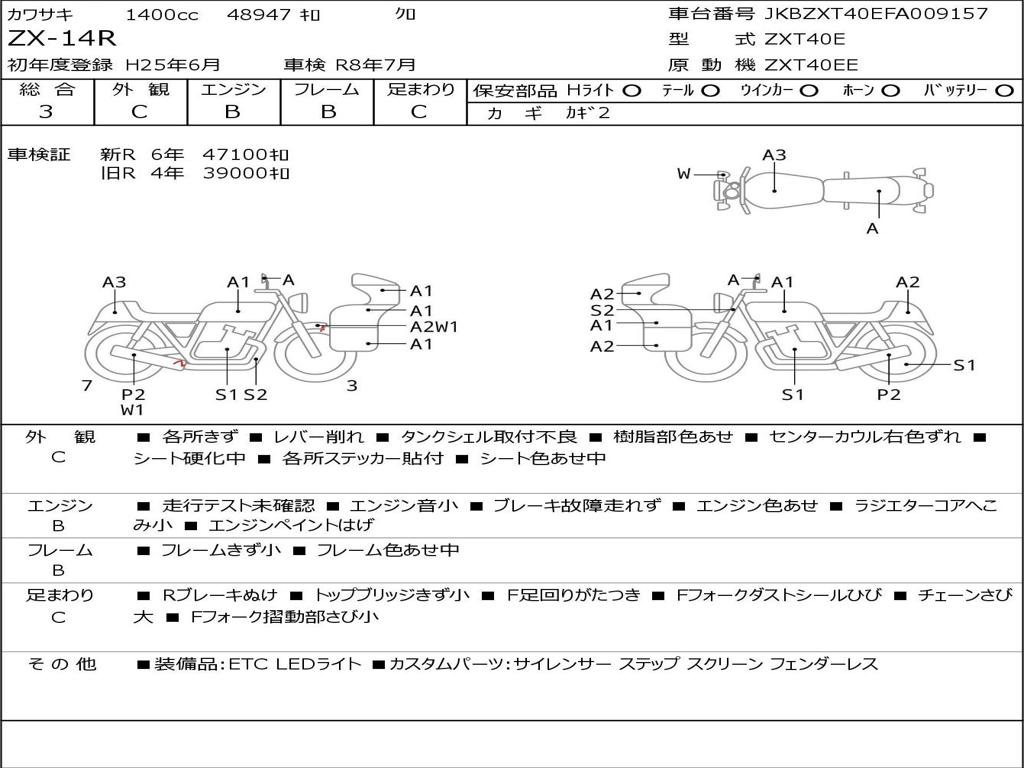 | Номер рамы / VIN | JKBZXT40EFA009157 |