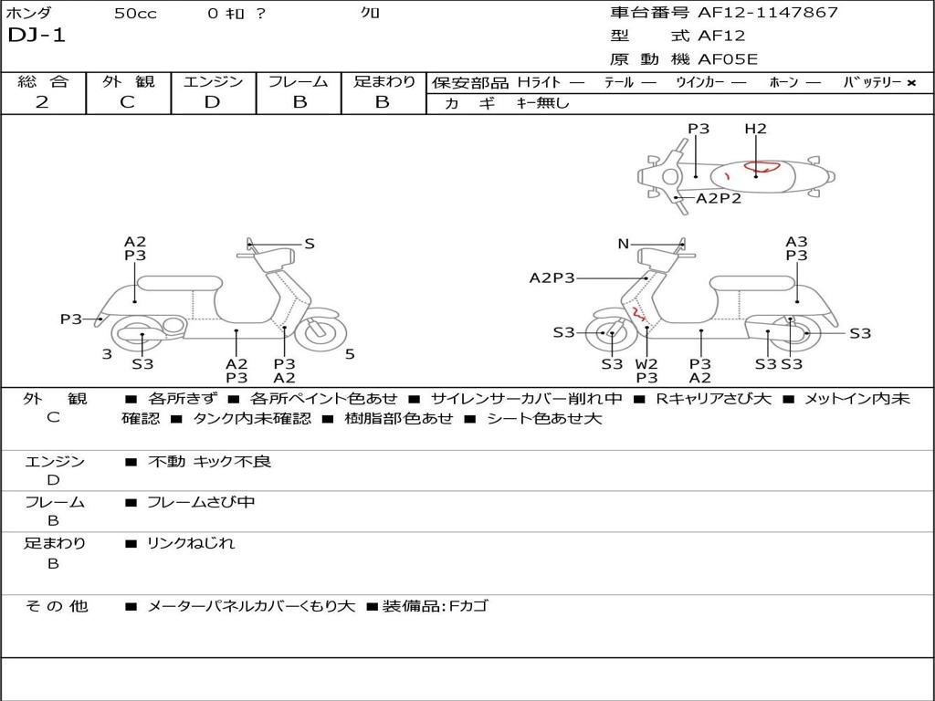 | Номер рамы / VIN | AF12-1147867 |