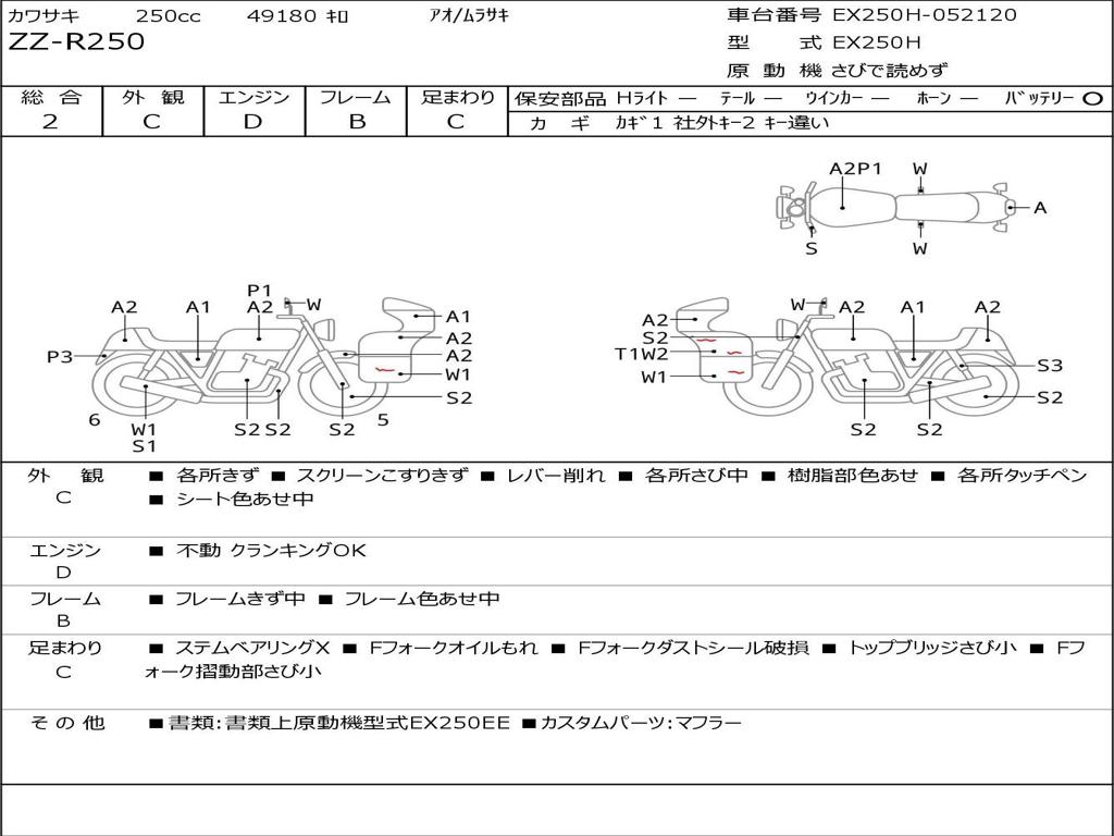 | Номер рамы / VIN | EX250H-052120 |