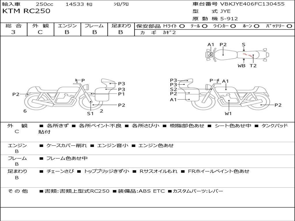 | Номер рамы / VIN | VBKJYE406FC130455 |