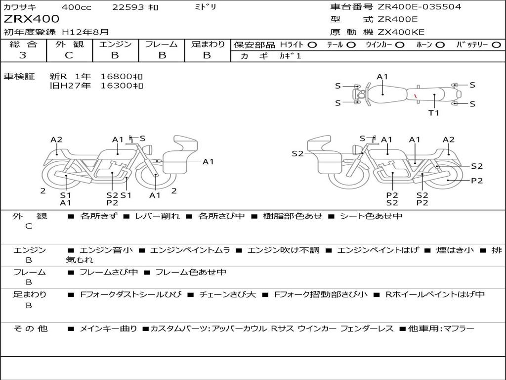 | Номер рамы / VIN | ZR400E-035504 |