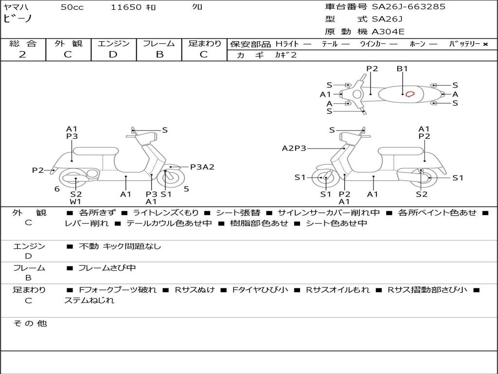 | Номер рамы / VIN | SA26J-663285 |