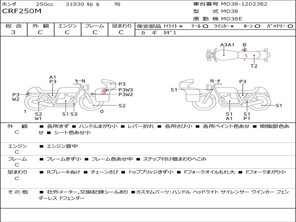| Номер рамы / VIN | MD38-1202382 |
