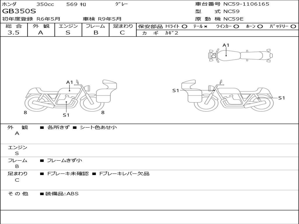 | Номер рамы / VIN | NC59-1106165 |