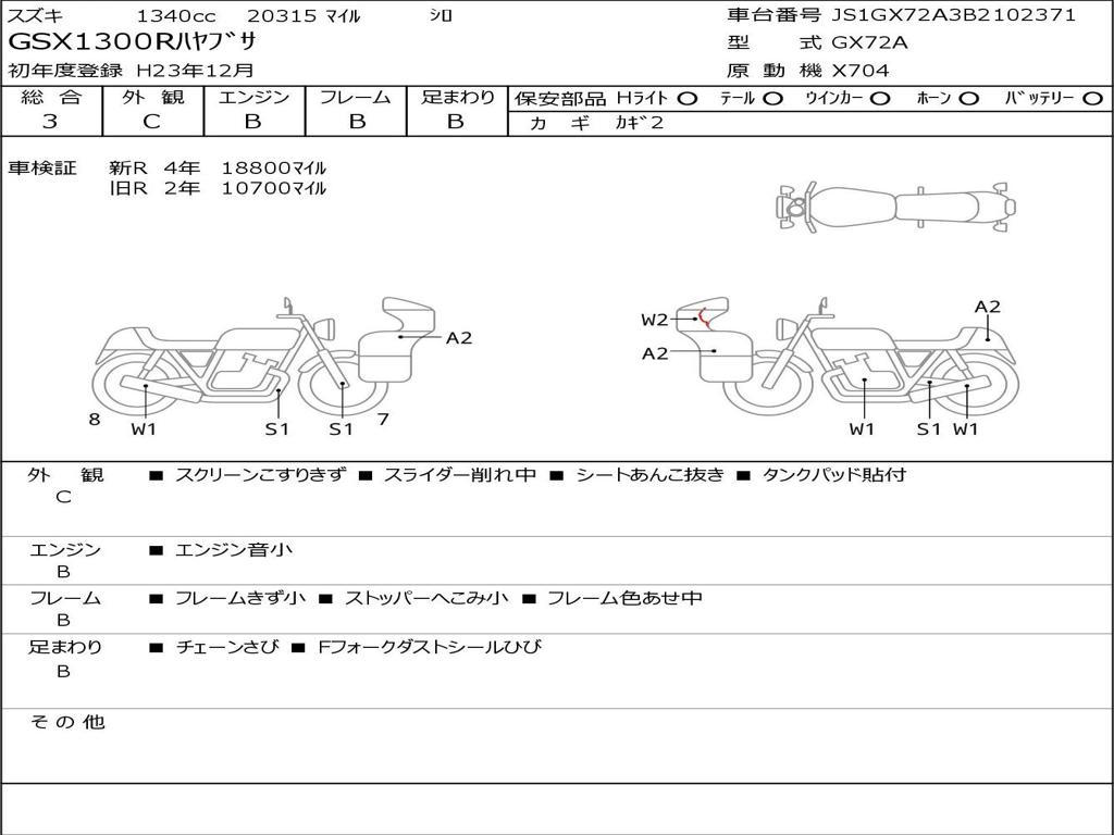 | Номер рамы / VIN | JS1GX72A3B2102371 |
