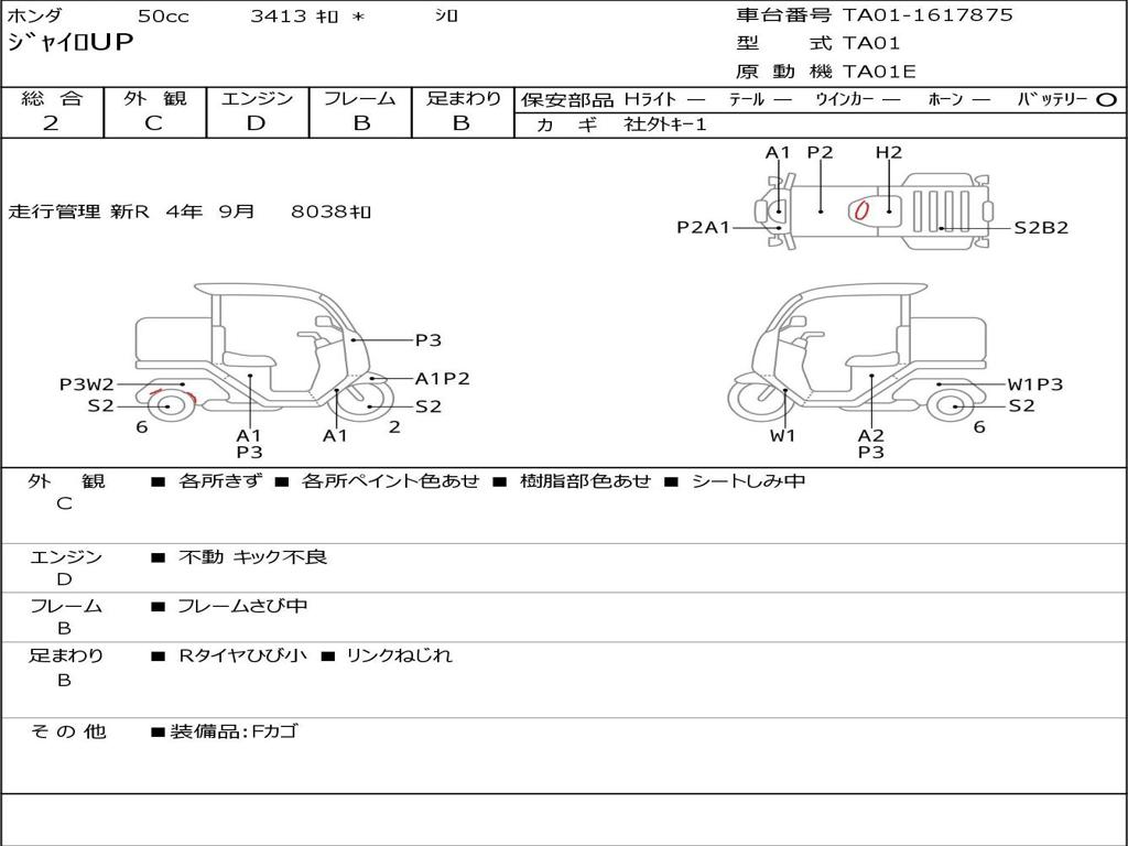 | Номер рамы / VIN | TA01-1617875 |