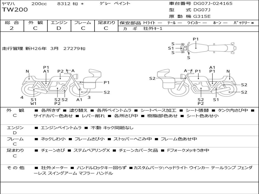 | Номер рамы / VIN | DG07J-024165 |