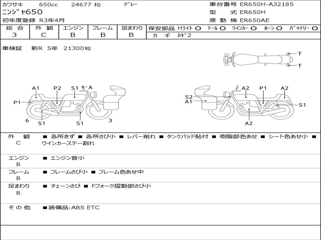 | Номер рамы / VIN | ER650H-A32185 |