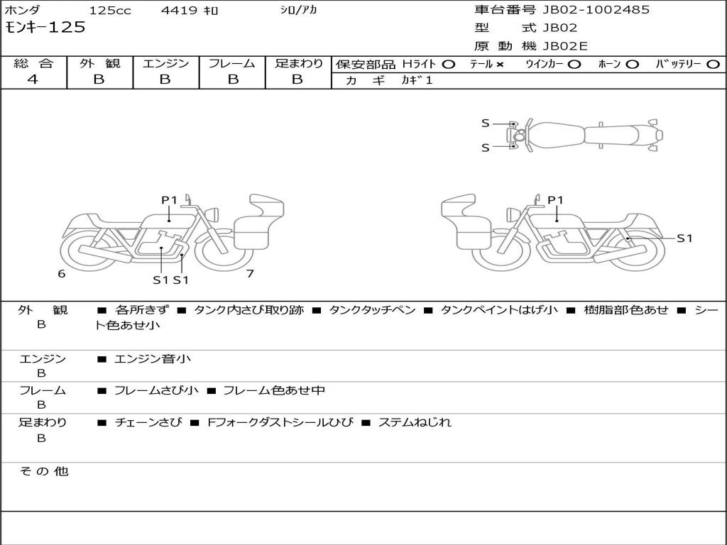 | Номер рамы / VIN | JB02-1002485 |