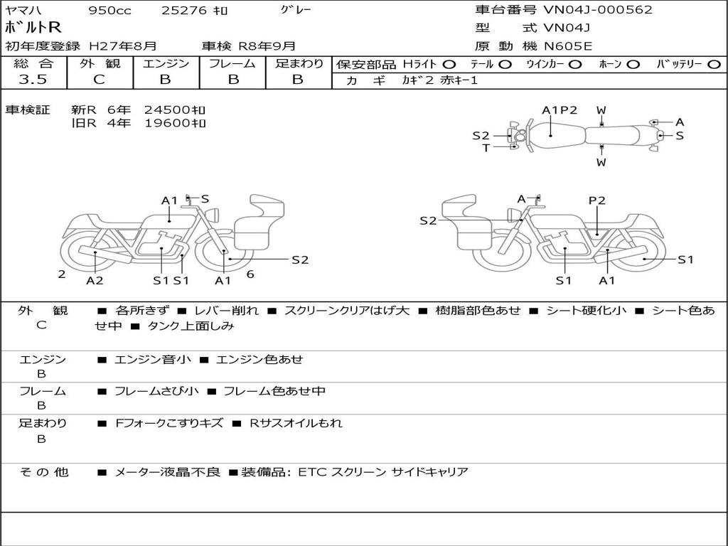 | Номер рамы / VIN | VN04J-000562 |