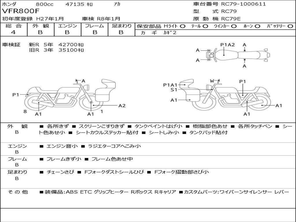 | Номер рамы / VIN | RC79-1000611 |