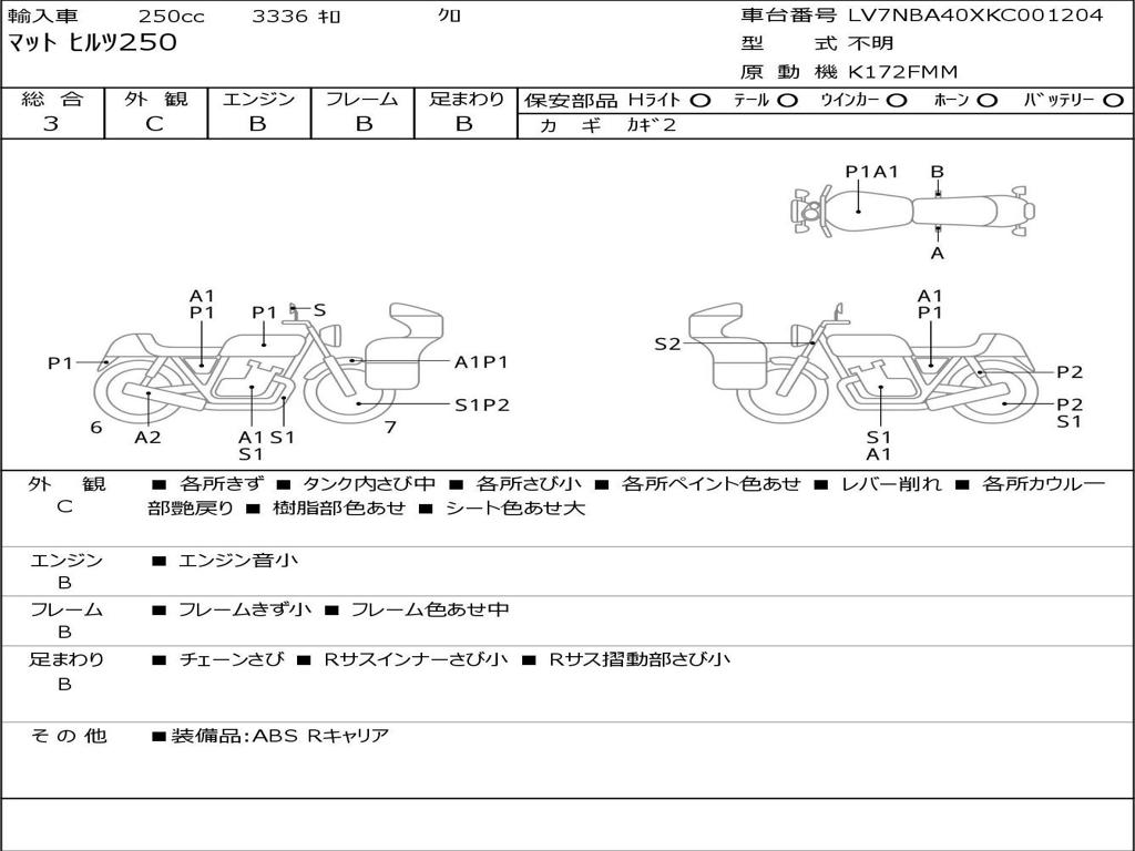 | Номер рамы / VIN | LV7NBA40XKC001204 |