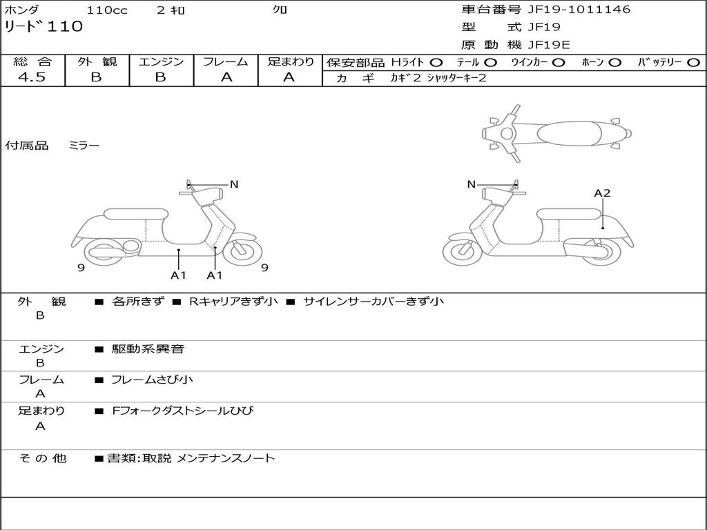 | Номер рамы / VIN | JF19-1011146 |
