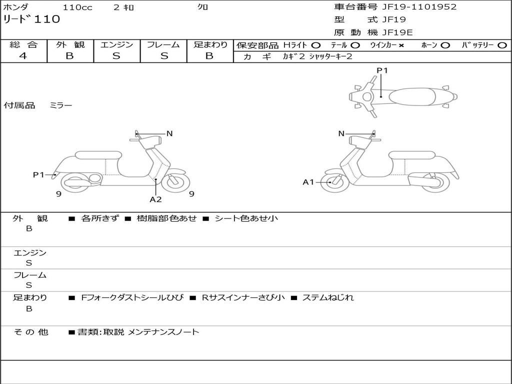 | Номер рамы / VIN | JF19-1101952 |