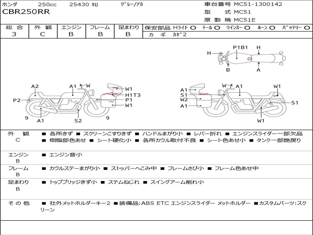 | Номер рамы / VIN | MC51-1300142 |