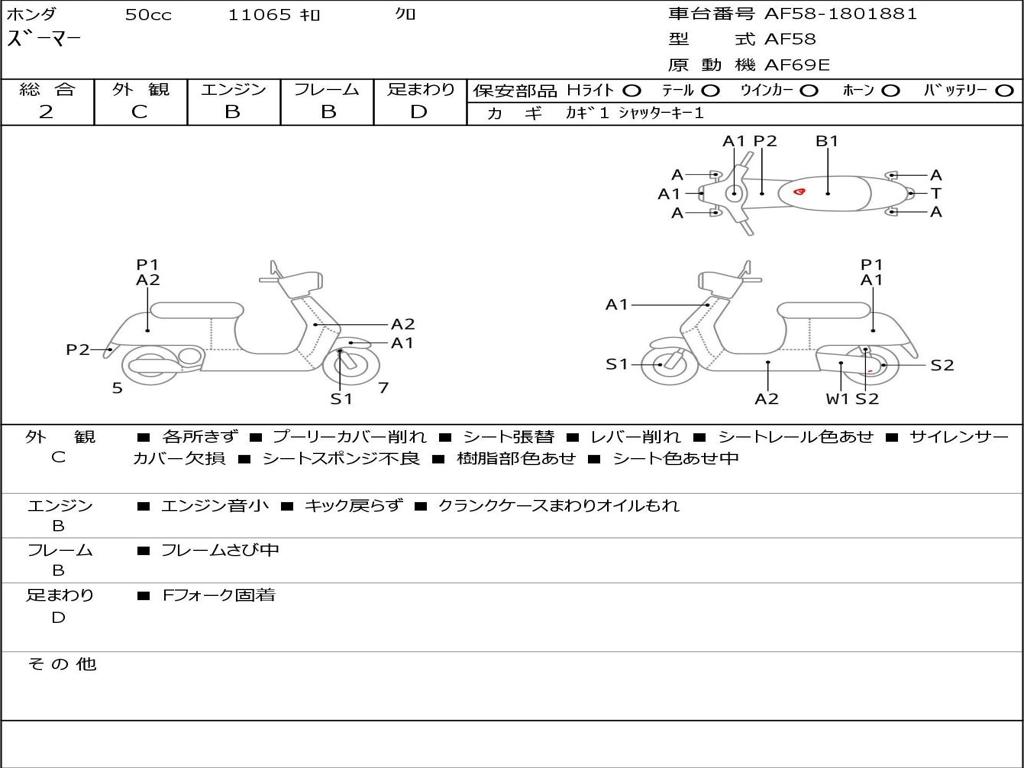 | Номер рамы / VIN | AF58-1801881 |