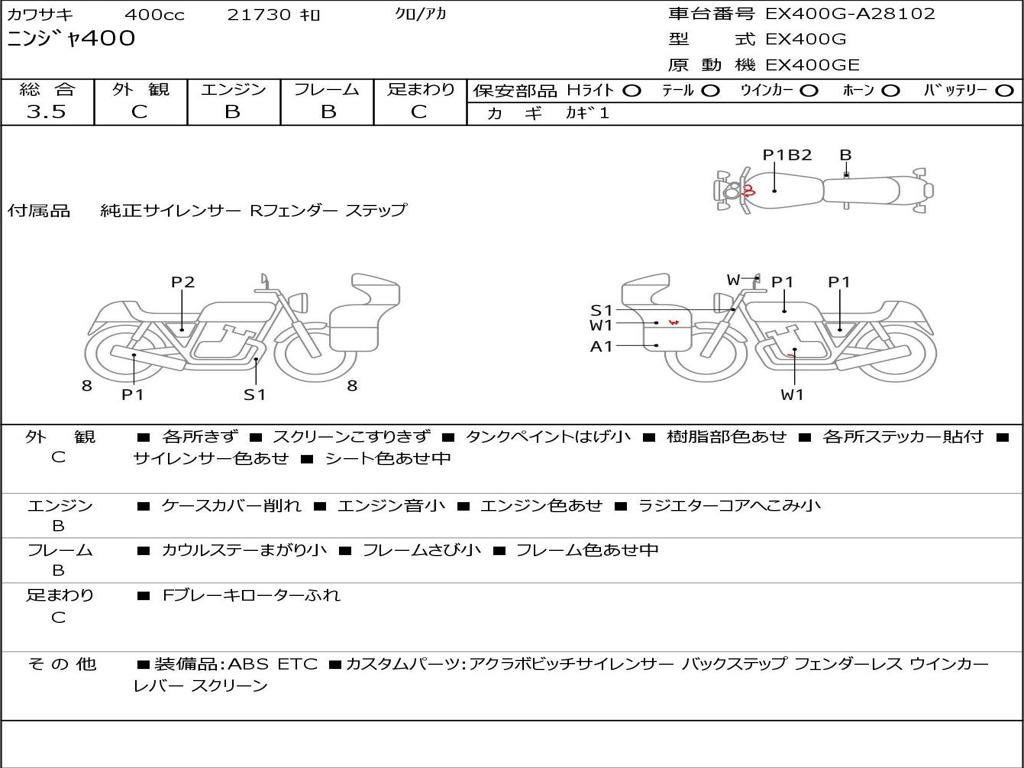 | Номер рамы / VIN | EX400G-A28102 |