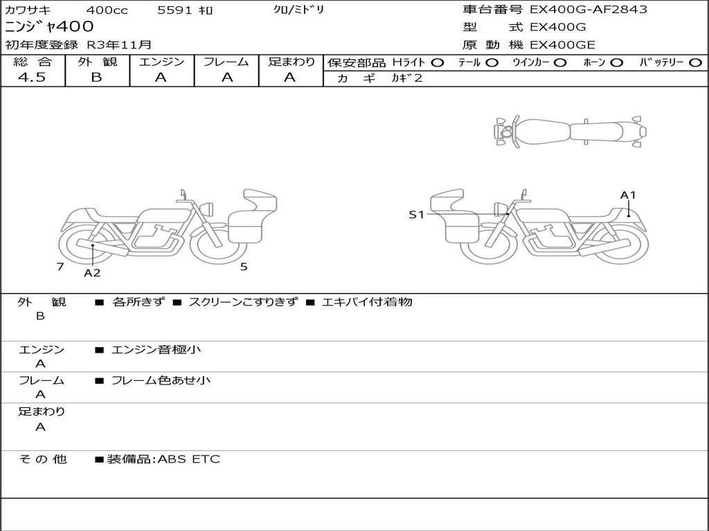 | Номер рамы / VIN | EX400G-AF2843 |