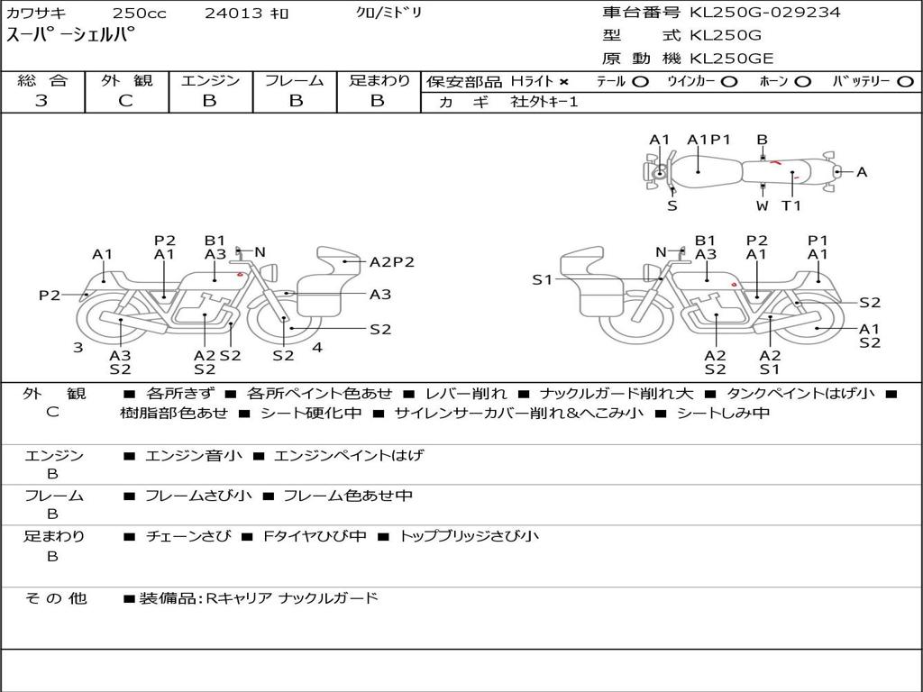 | Номер рамы / VIN | KL250G-029234 |