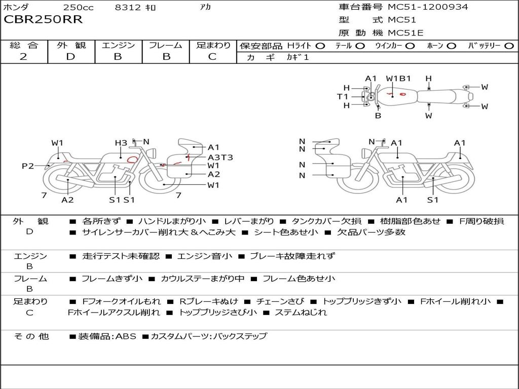 | Номер рамы / VIN | MC51-1200934 |