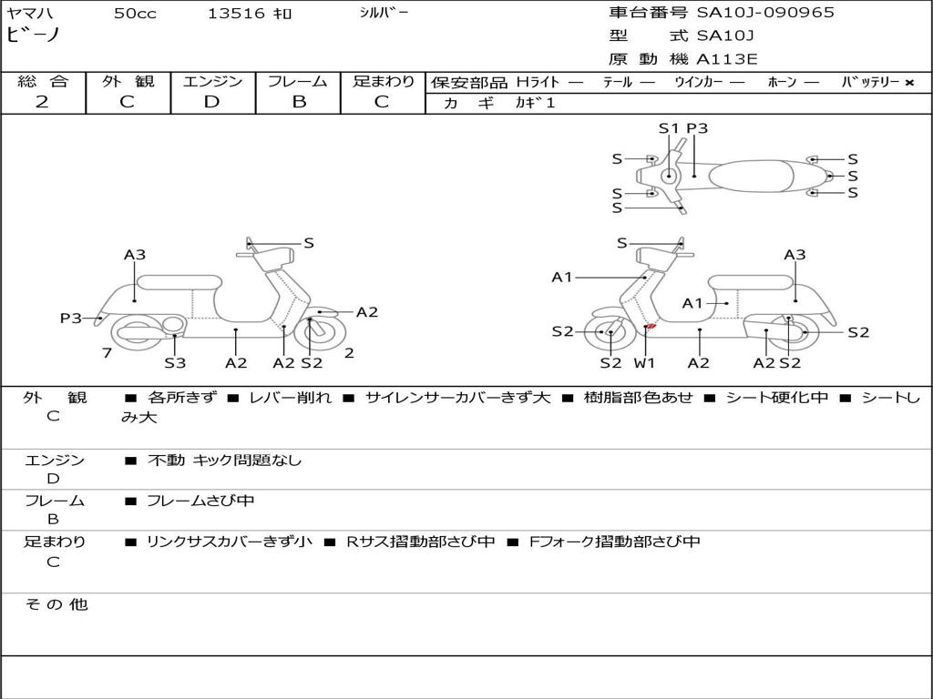 | Номер рамы / VIN | SA10J-090965 |