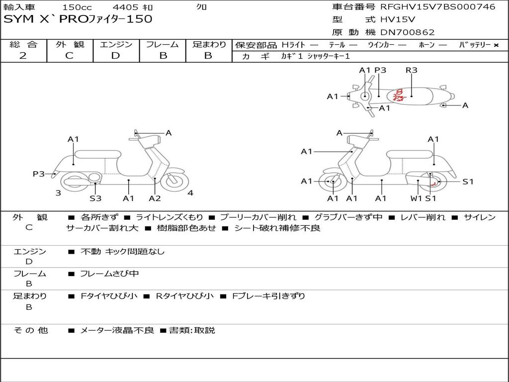 | Номер рамы / VIN | RFGHV15V7BS000746 |