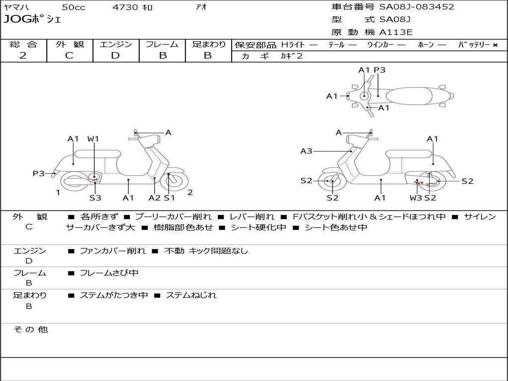 | Номер рамы / VIN | SA08J-083452 |