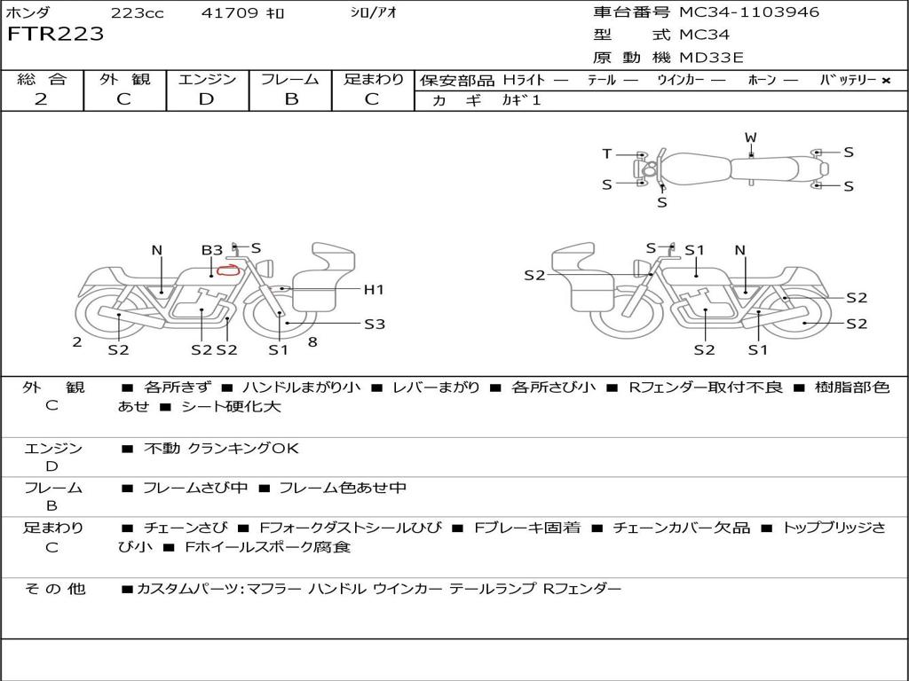 | Номер рамы / VIN | MC34-1103946 |