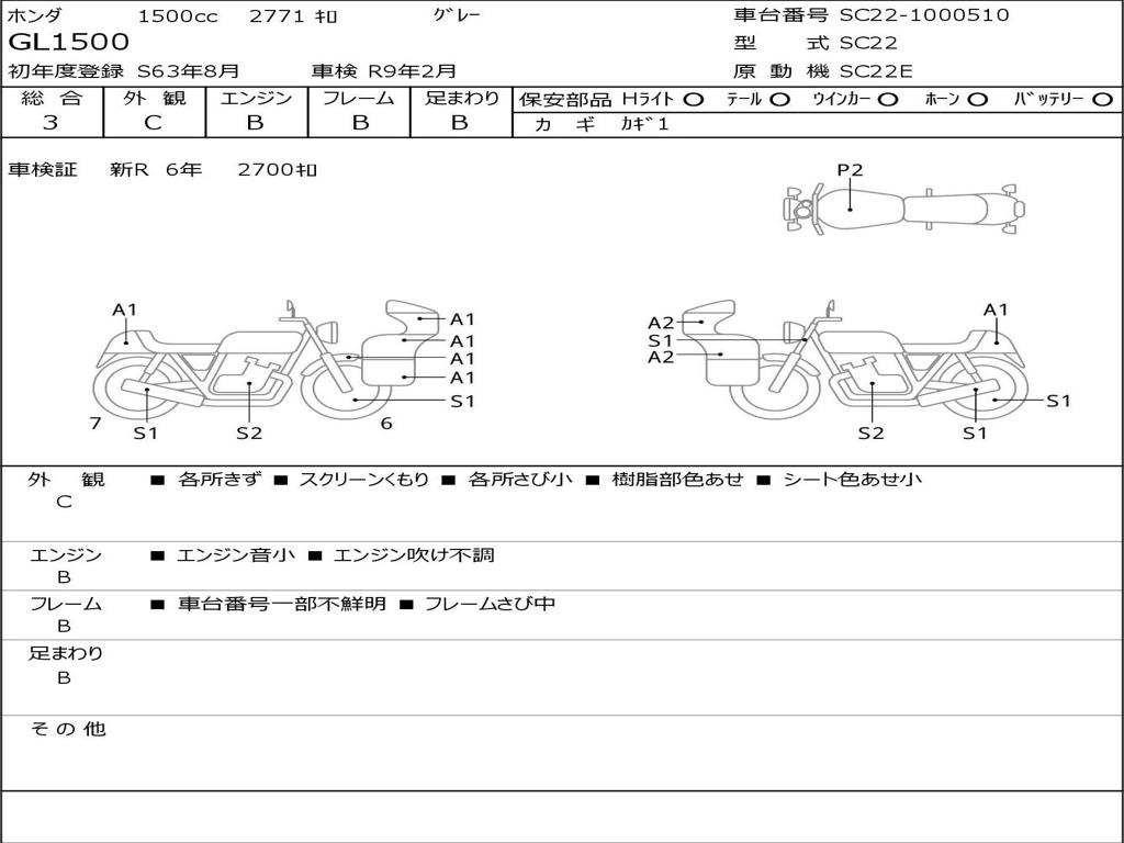 | Номер рамы / VIN | SC22-1000510 |