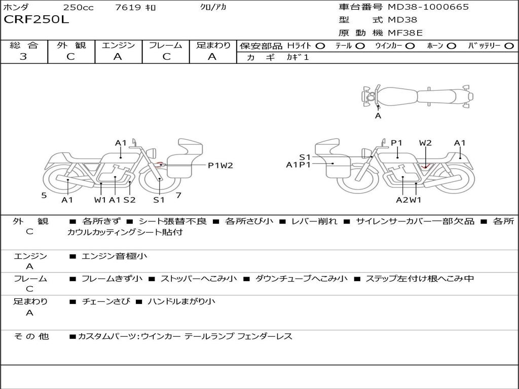 | Номер рамы / VIN | MD38-1000665 |