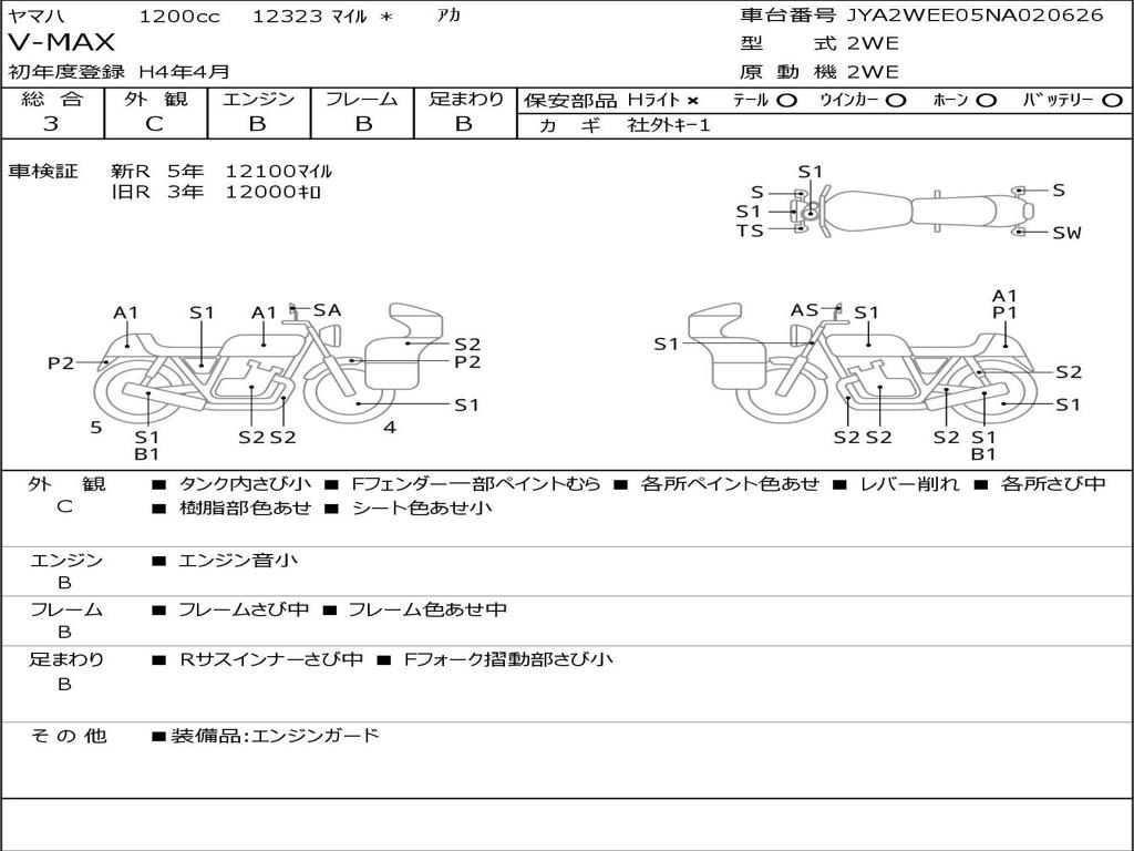 | Номер рамы / VIN | JYA2WEE05NA020626 |