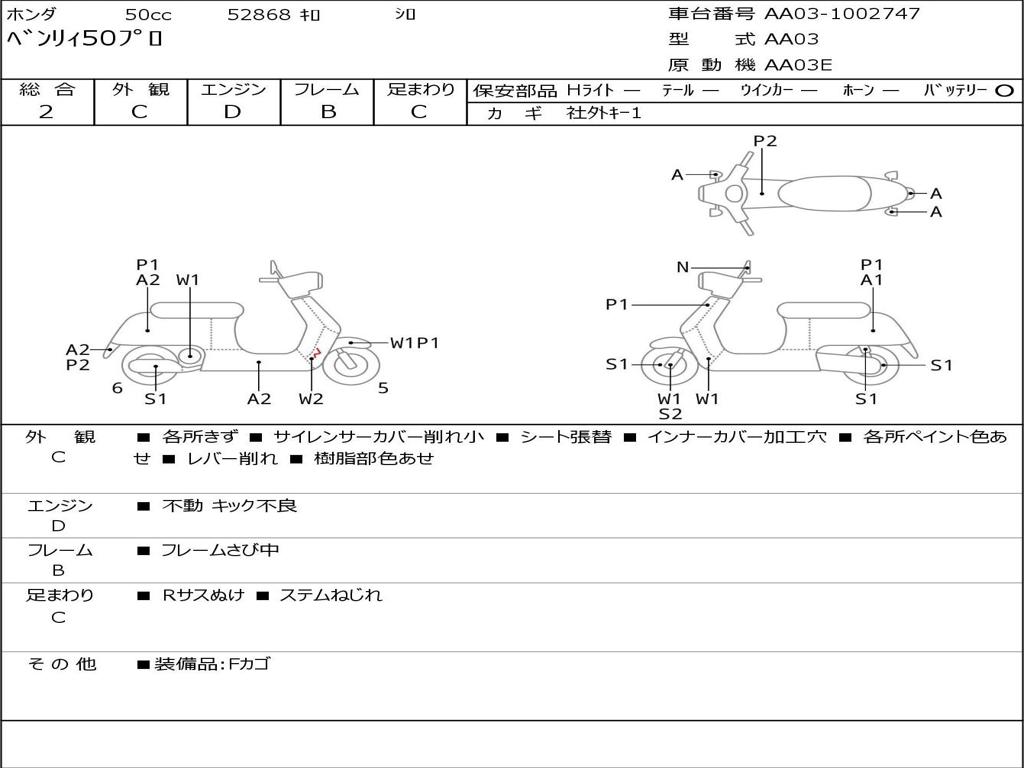 | Номер рамы / VIN | AA03-1002747 |