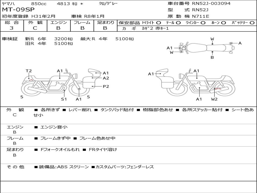 | Номер рамы / VIN | RN52J-003094 |