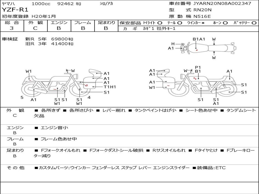 | Номер рамы / VIN | JYARN20N08A002347 |