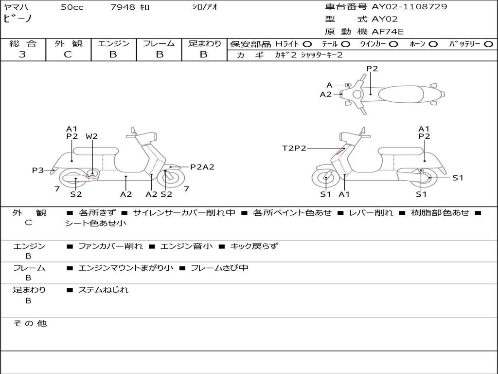 | Номер рамы / VIN | AY02-1108729 |