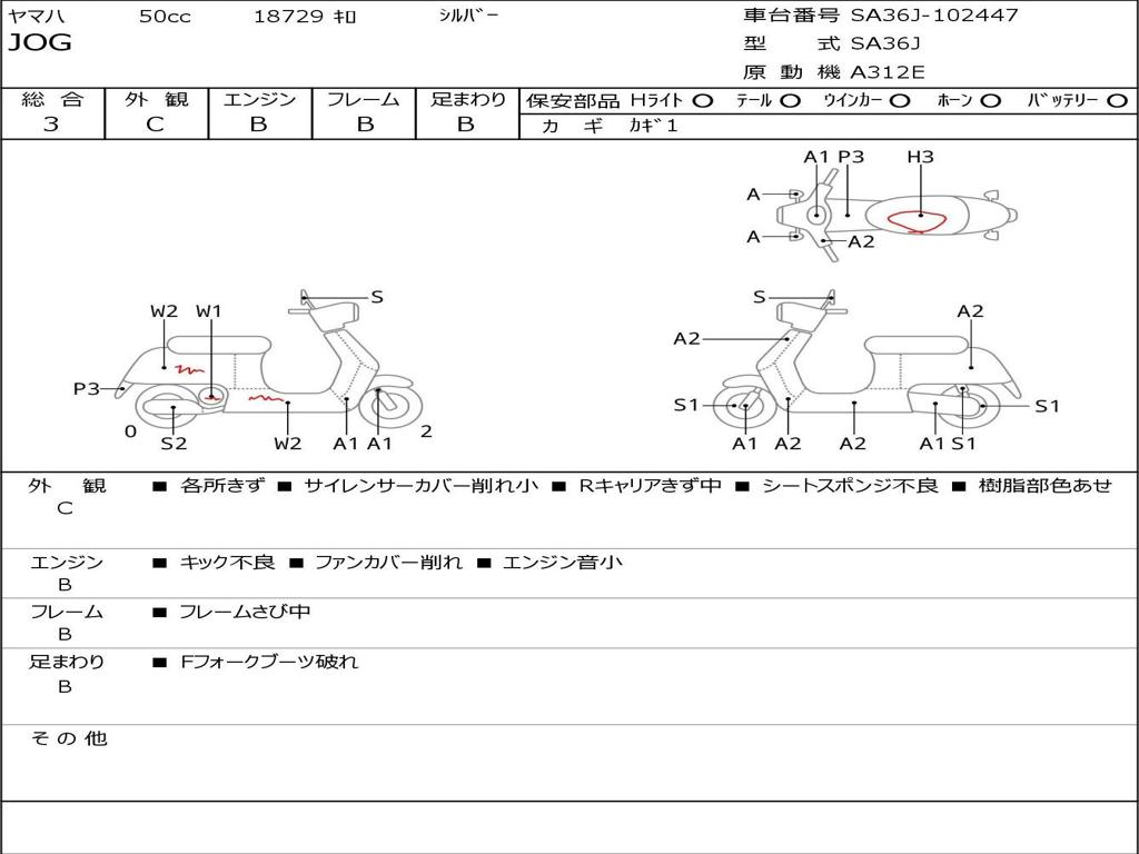 | Номер рамы / VIN | SA36J-102447 |