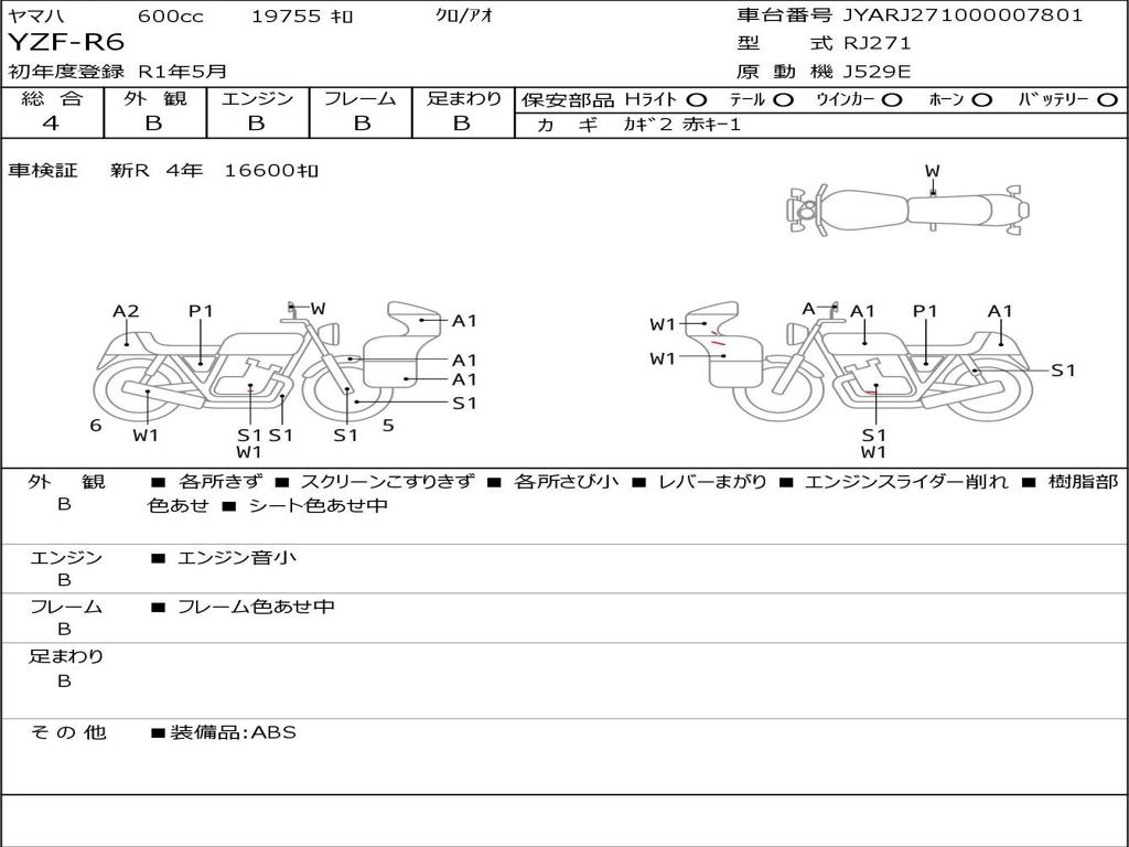 | Номер рамы / VIN | JYARJ271000007801 |