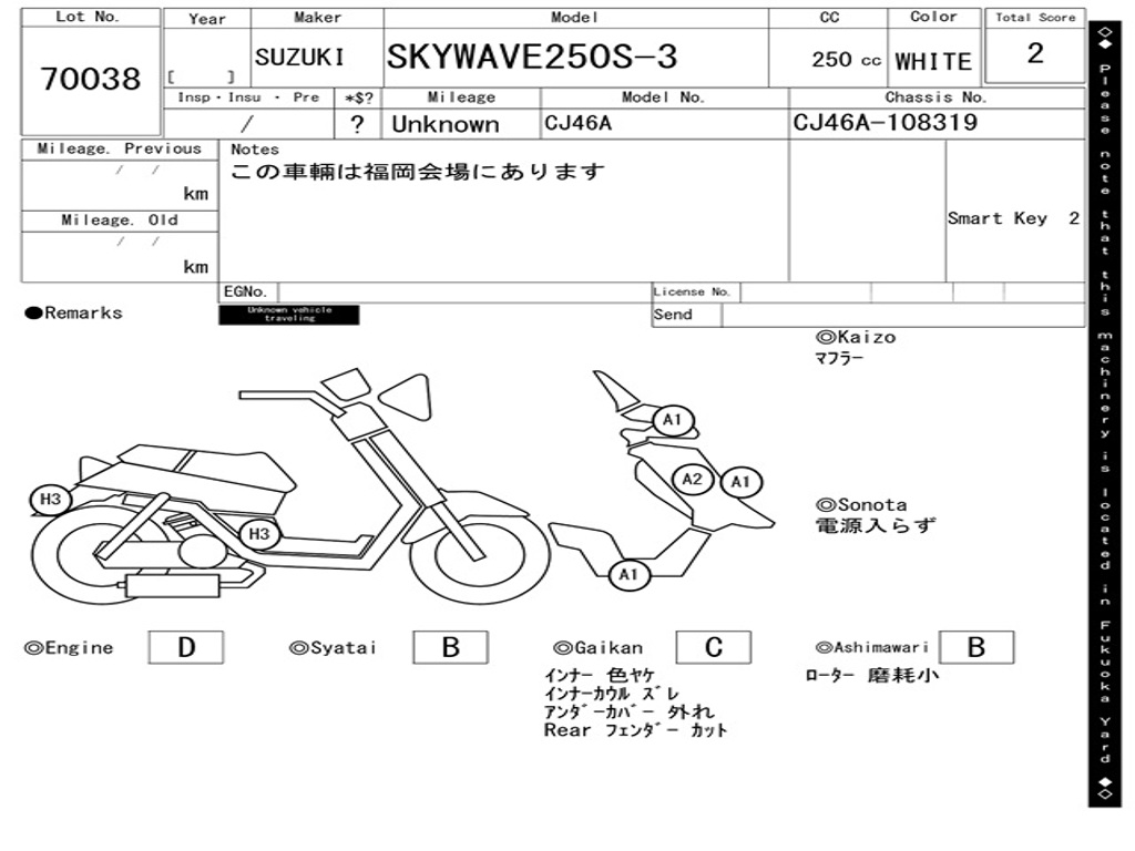 | Номер рамы / VIN | CJ46A-108319 |