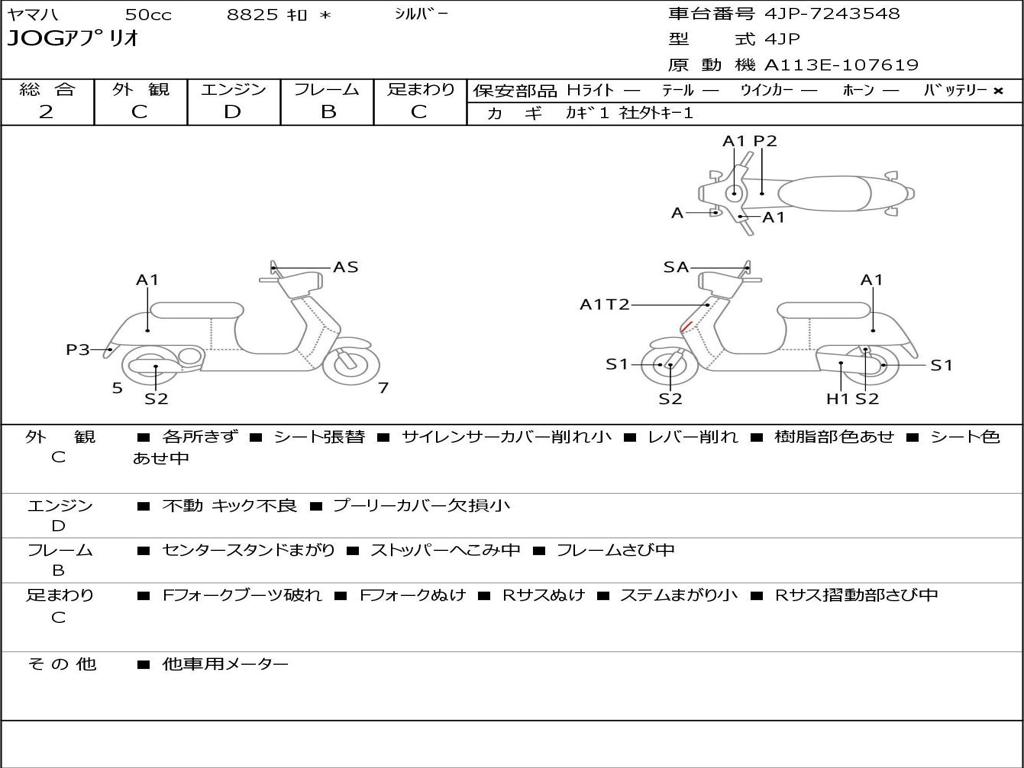 | Номер рамы / VIN | 4JP-7243548 |