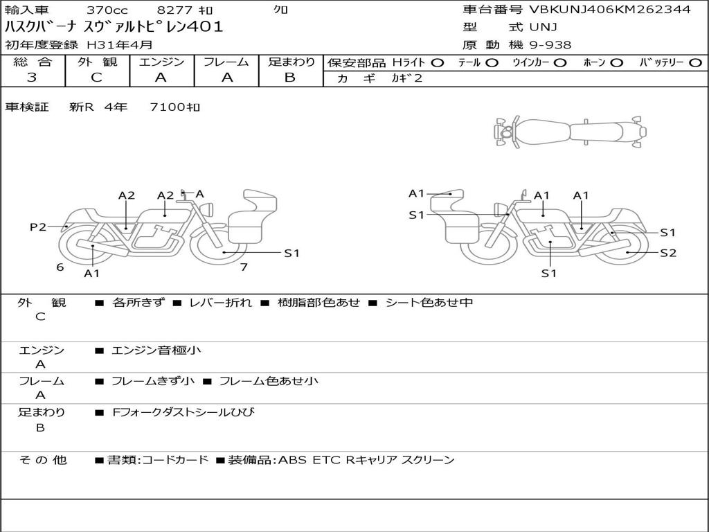 | Номер рамы / VIN | VBKUNJ406KM262344 |