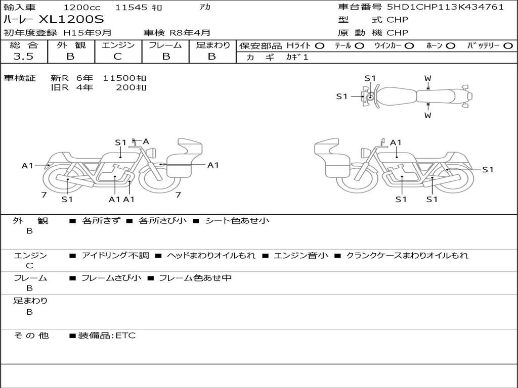 | Номер рамы / VIN | 5HD1CHP113K434761 |
