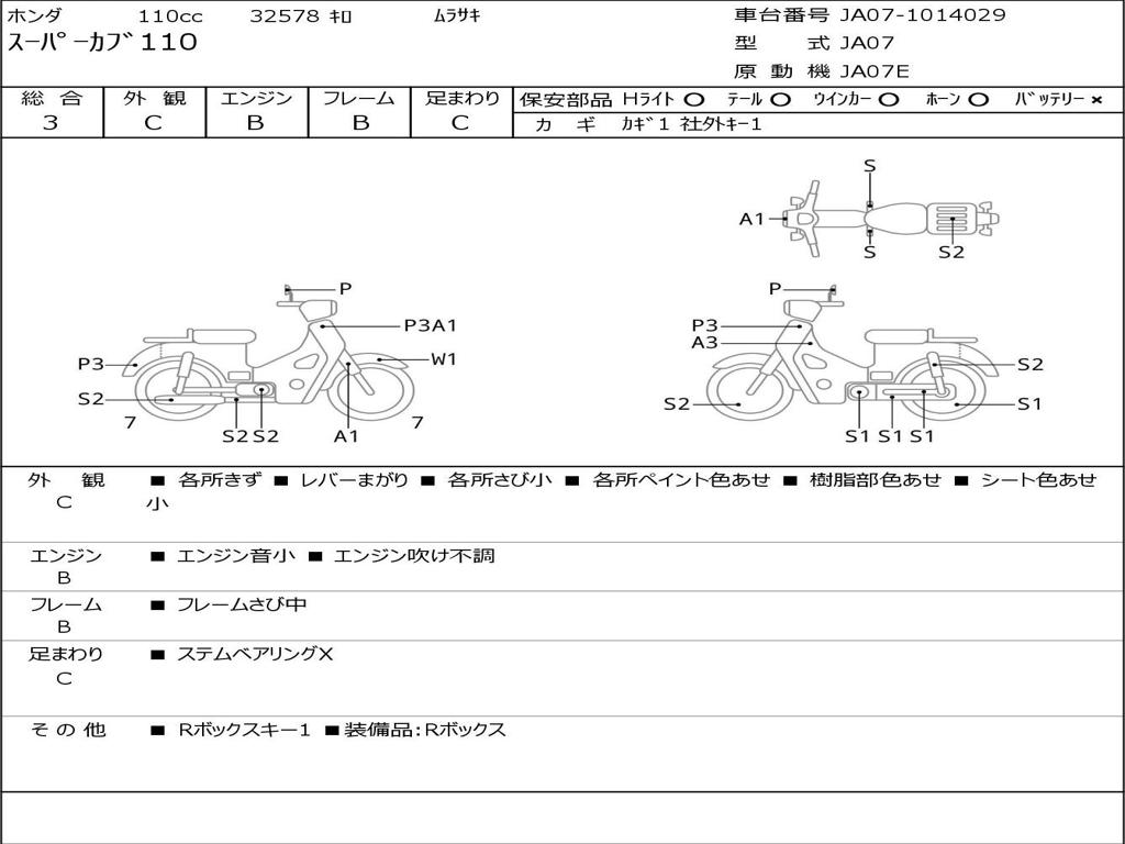| Номер рамы / VIN | JA07-1014029 |