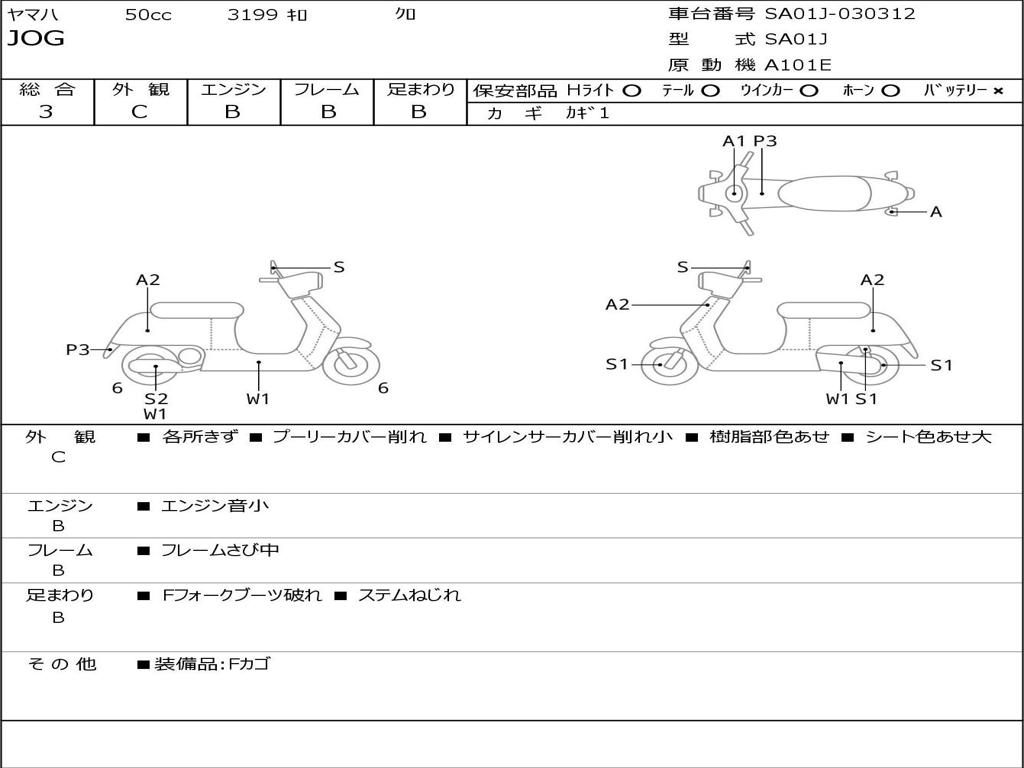 | Номер рамы / VIN | SA01J-030312 |