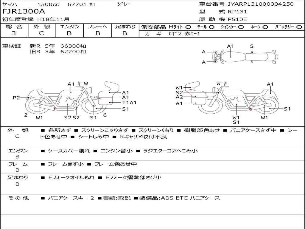 | Номер рамы / VIN | JYARP131000004250 |
