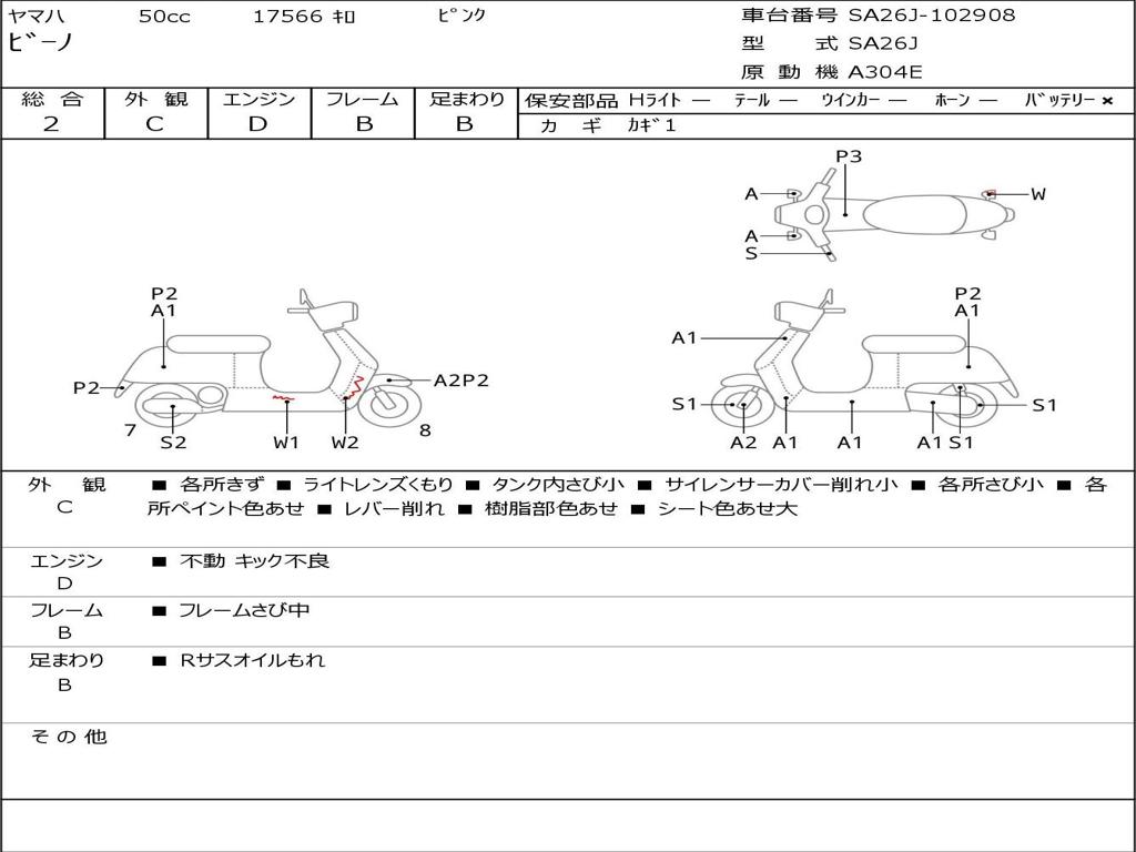 | Номер рамы / VIN | SA26J-102908 |
