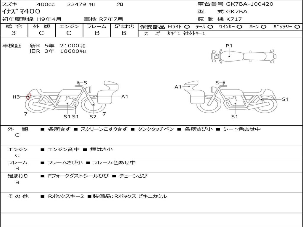 | Номер рамы / VIN | GK7BA-100420 |