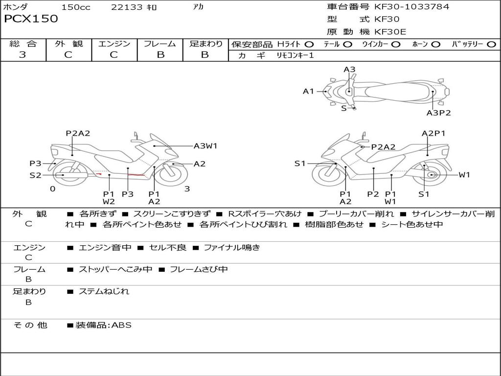 | Номер рамы / VIN | KF30-1033784 |