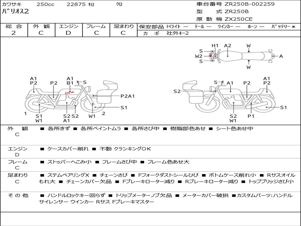 | Номер рамы / VIN | ZR250B-002259 |