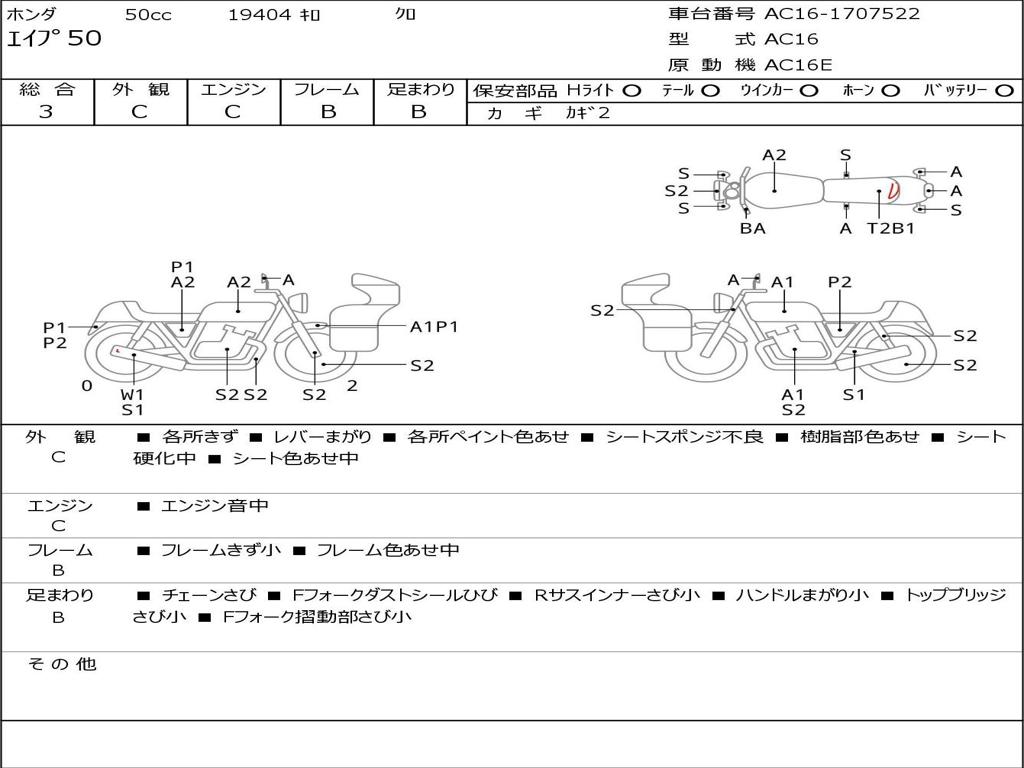 | Номер рамы / VIN | AC16-1707522 |